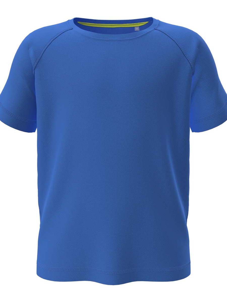Nowoczesne i elastyczne sportowe T-shirty dla dzieci, z raglanowymi rękawami, wykonane z szybkoschnącej i oddychającej siateczki. Taśma w kontrastującym kolorze na karku, dekoracyjne szerokie szwy i pełna swoboda ruchu.